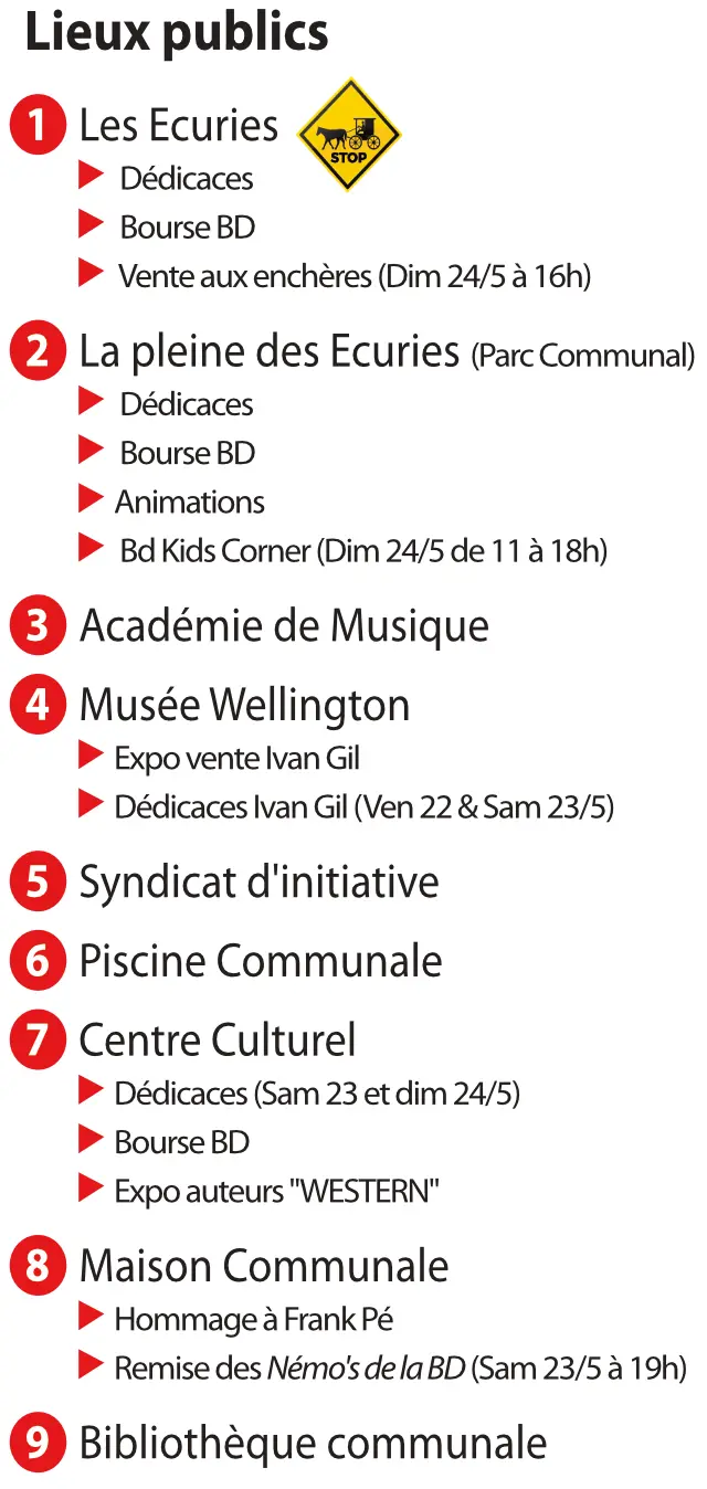 de 10 à 18H30 : Dédicaces et bourse des collectionneurs aux Ecuries et au Centre Culturel.